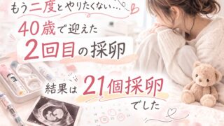 40歳で迎えた2回目の採卵。もう二度とやりたくないと思っていたのに、結果は21個採卵・16個凍結という予想外の結果に。不妊治療中のリアルな体験を綴ります。